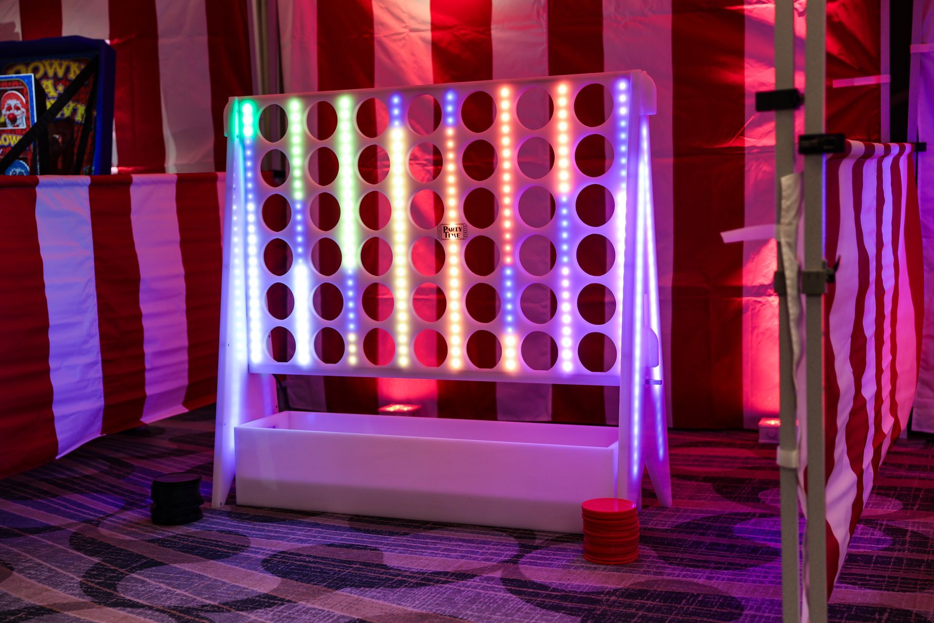 Get ready for the ultimate showdown with our all-new LED GLOW Giant Connect Four! Customize the color(s) to fit your event theme or company BRAND identity. Light up the competition as you strategize, stack, and outplay your opponent in this supersized classic. Be the first to connect four discs in a row—diagonally, horizontally, or vertically—and claim victory! Perfect for Boston, MA Corporate Entertainment, Boston School Events, Private Parties, and the kid in every adult. Our Connect Four Glow Game Rental is a guaranteed crowd-pleaser.