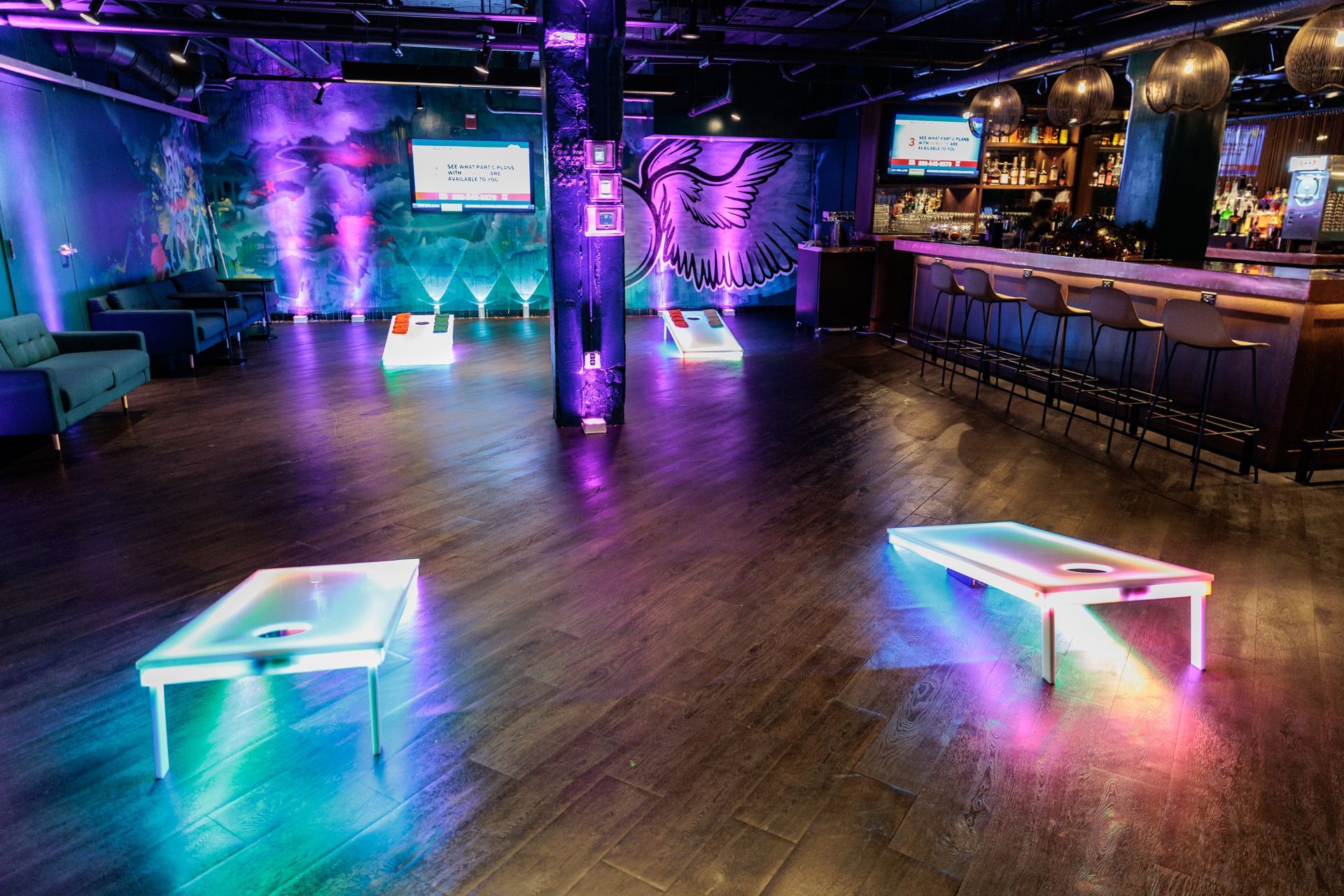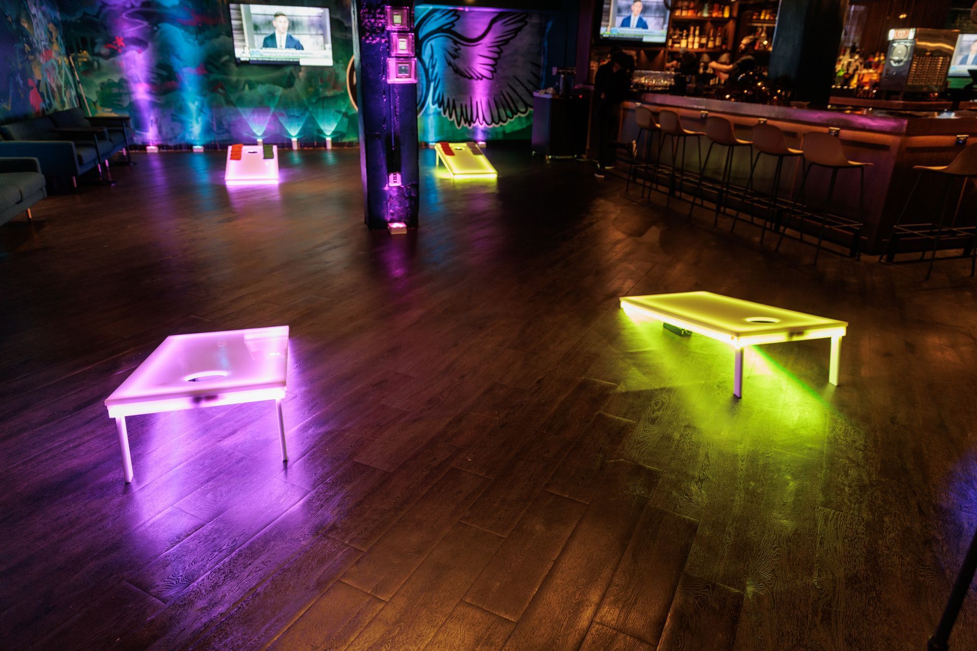 Our wide variety of GLOW GAMES provide a range of design options that can be adapted to match any event theme or style. Whether you're organizing a business conference, backyard mixer, or a product or BRAND debut our GLOW GAME setups can be personalized with lighting hues, effects and arrangements to enhance the appeal of your event.