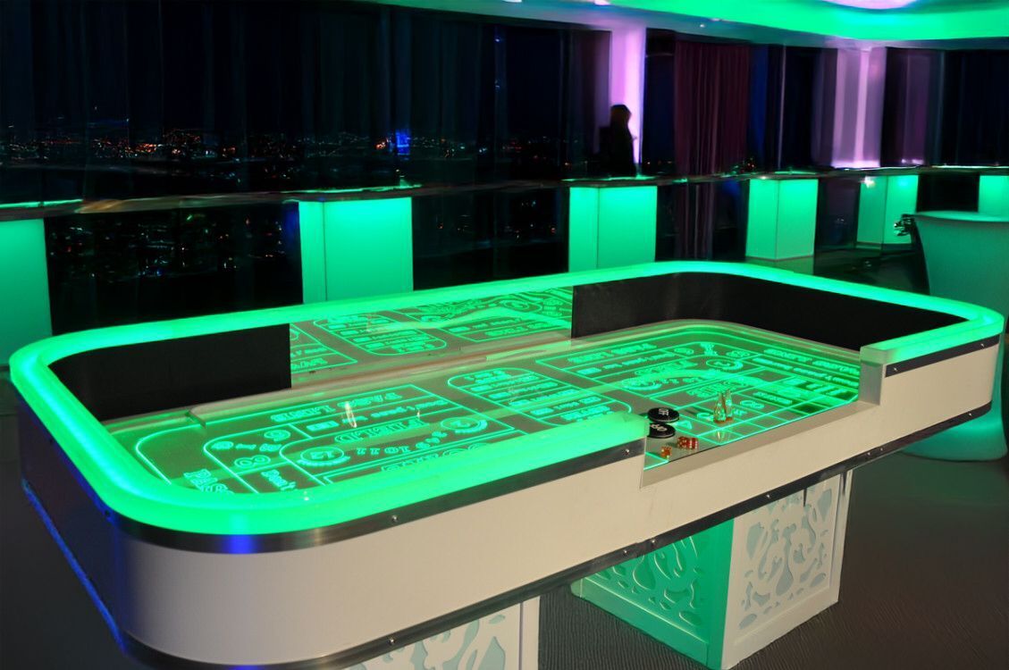 GLOW GAME RENTALS, designed to elevate any event with style and sophistication. We offer a wide array of games (including Casino Glow Table Games) to satisy the biggest competitors and gaming entusiasts. We also offer all our games to be vinyl wrapped or embellished with your monogram or company logo for the ultimate in personalized gaming.