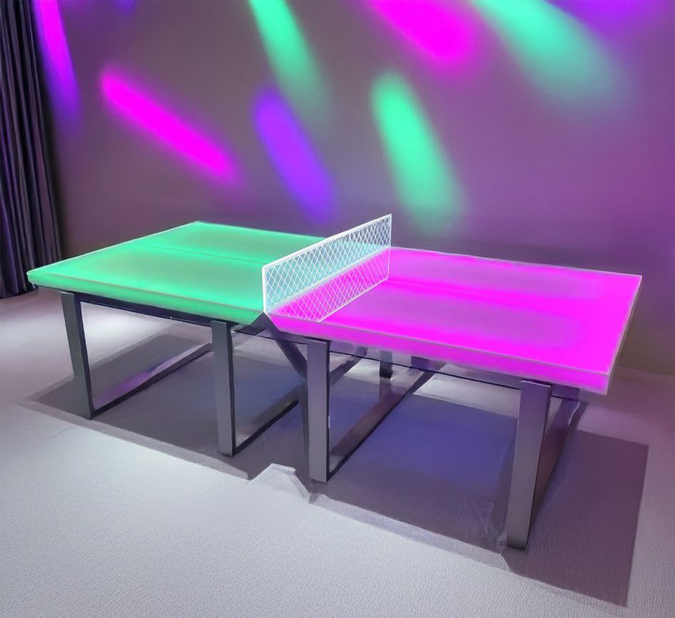This table is sure to wow your guests and keep the energy glowing all night long, whether you are looking to create a specific vibe or an electrifying game night experience. Transform your gaming experience to the next level with our SUPER-GLOW LED Ping Pong Tables—the perfect center piece for any event! Our tables use moving light technology to make every part of the table, including the net and borders, light up independently. We can help you design a one-of-a-kind, high-energy experience that will be sure to engage all your guests.