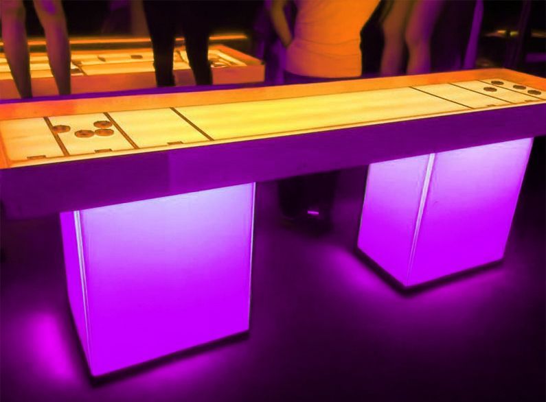 Take your event to the next level with our LED GLOW Shuffleboard, a thrilling and captivating upgrade to the classic game. Featuring vibrant LED lights, our custom built tables create a dazzling playing surface that energizes any event, from casual game nights to corporate parties. Perfect for players of all levels, our premium LED Shuffleboard tables ensure seamless gameplay while adding a stylish, high-energy vibe. Make your event an unforgettable one — rent our LED GLOW Shuffleboard table today!