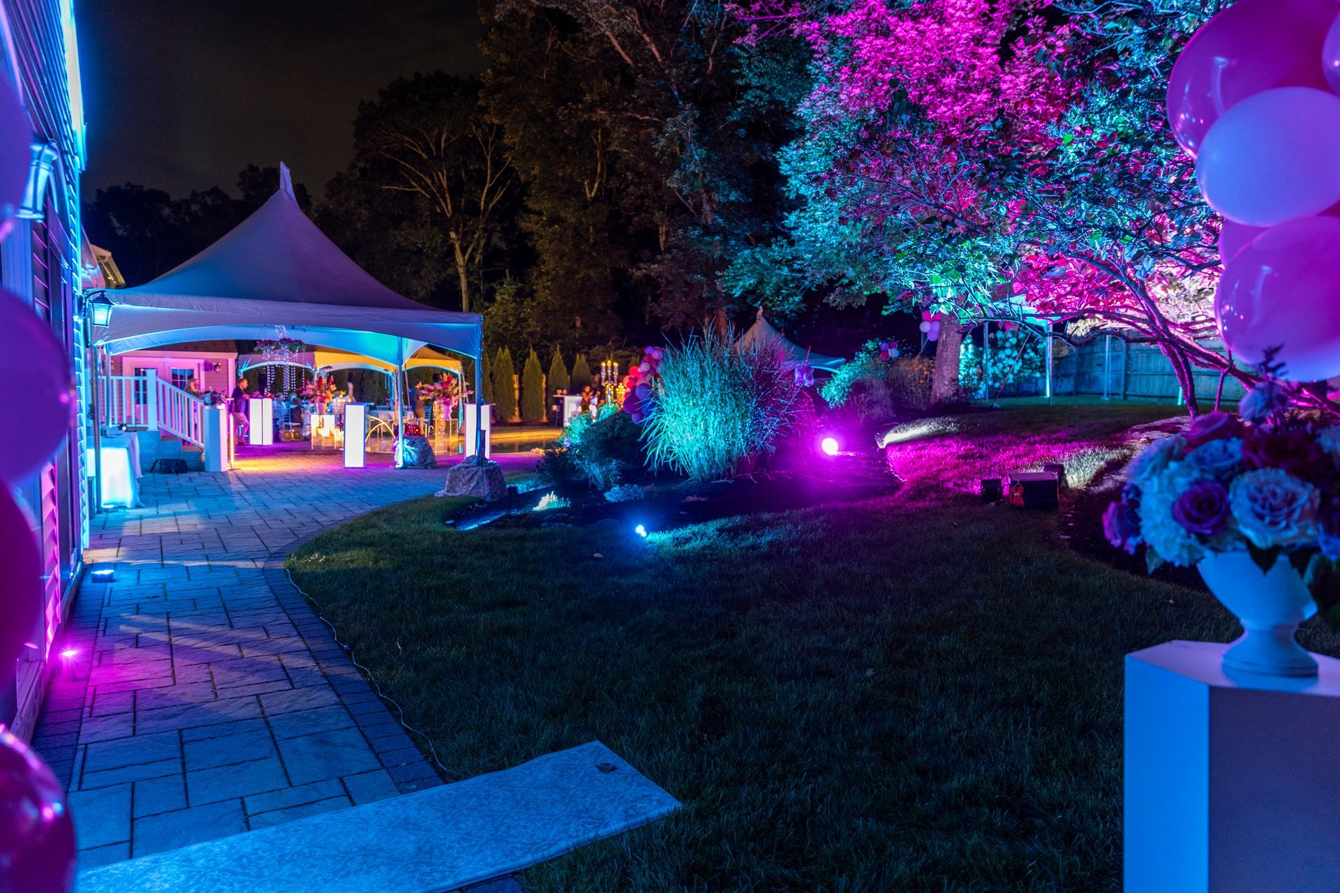We installed our custom-designed wireless and sound-active light show, paired with our award-winning DJ Entertainment and GIANT Music Video Screen. Would you like to see the Party Trailer? Just give us a call!