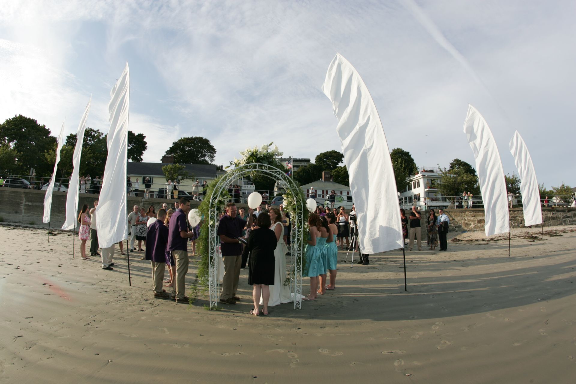 Our stunning 20ft tall white wedding flags add elegance and grandeur to any outdoor ceremony. Perfect for beaches, piers, wharfs, or countryside venues, these towering flags create a romantic, flowing backdrop while making a bold and graceful statement.
